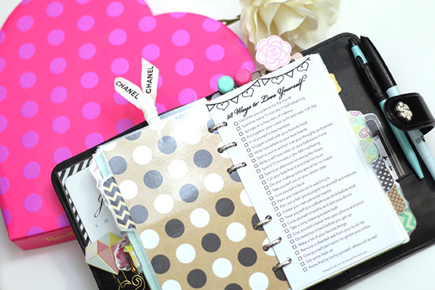 February is right around the corner, and so it is of course time for another Free Filofax Printable themed with a monthly checklist and made especially for you! So many of you have been reaching out to me to ask me about this month’s printable and it was so difficult for me to keep the details under wraps! I get so excited about each new insert I make, and I on one hand I want to scream it from the rooftops and see what you guys think, but then on the other hand I want to keep it secret until the very special reveal day! As you can tell from the title of this post, the free insert is themed for Valentine’s Day with a checklist of 28 Ways to Love Yourself. So this isn’t your traditional Valentine’s Day, lovey-dovey romance sort of list, this is all about you focusing on the number one person in your life: YOU! Yes, that is right, I said you! You are such an important person and without you, your whole world would go upside down! So, for February I thought it would be rather appropriate for this insert to focus on ways that you can show yourself love and focus on important self-care items!