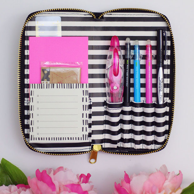 The final Filofax accessory item I have to talk about is a new on the go stationery pouch I have been using. You may have seen this image above if you follow me on Instagram, and ever since I posted it I have been getting many questions about where I purchased it. This awesome little pouch is actually from a makeup brush kit from Forever 21. I think this pouch is perfect for me because it’s nice and small, but it contains dedicated spaces for pens, as well as a nice little pocket to store sticky notes, page flags, and other flat accessories! The exterior of the pouch is a simple black faux leather, but inside, well, inside is like a dream come true for me with a bold print of black and white stripes! Stay tuned to my YouTube channel because I have a feeling this little pouch will most likely make its way into a video or two in the coming weeks, seriously, how can it not, it’s absolutely adorable!
