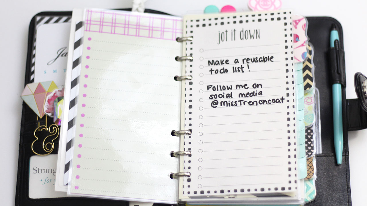 These videos are filled with a lot of great information, tips and tricks, so I highly suggest checking them out. Specifically, I have been obsessed with making myself Reusable To Do Lists for my planner, and if you can only watch one video, this is the one I would recommend. With this simple method, I have been able to create a number of reusable task lists to organize my work, plan my meals, organize my groceries and even do a bit of mind-mapping! They are very easy to make and even easier to use because they are essential white boards for your planner!