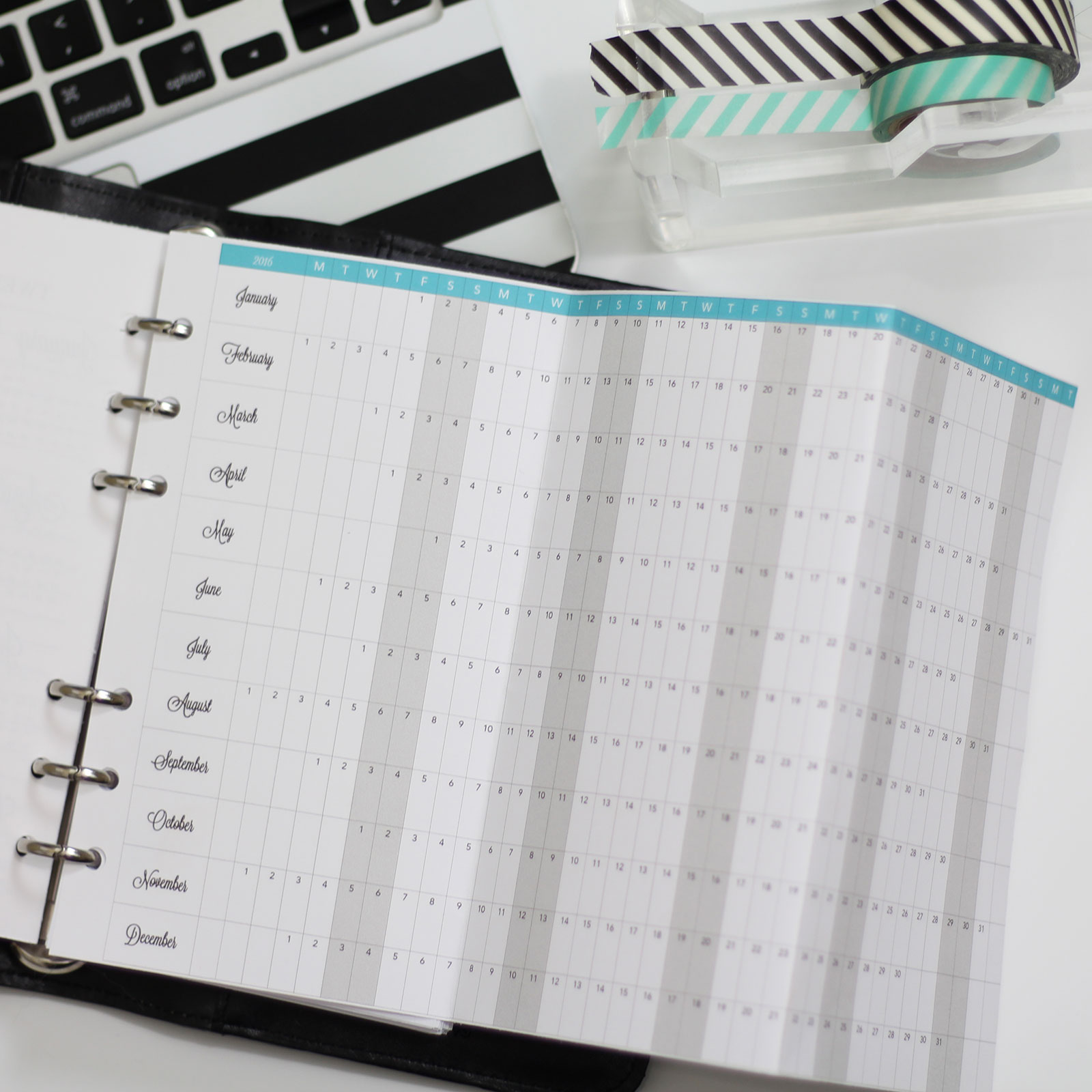 First, I have a lovely 2016 Year at a Glance Insert! The perfect date reference for your planner.