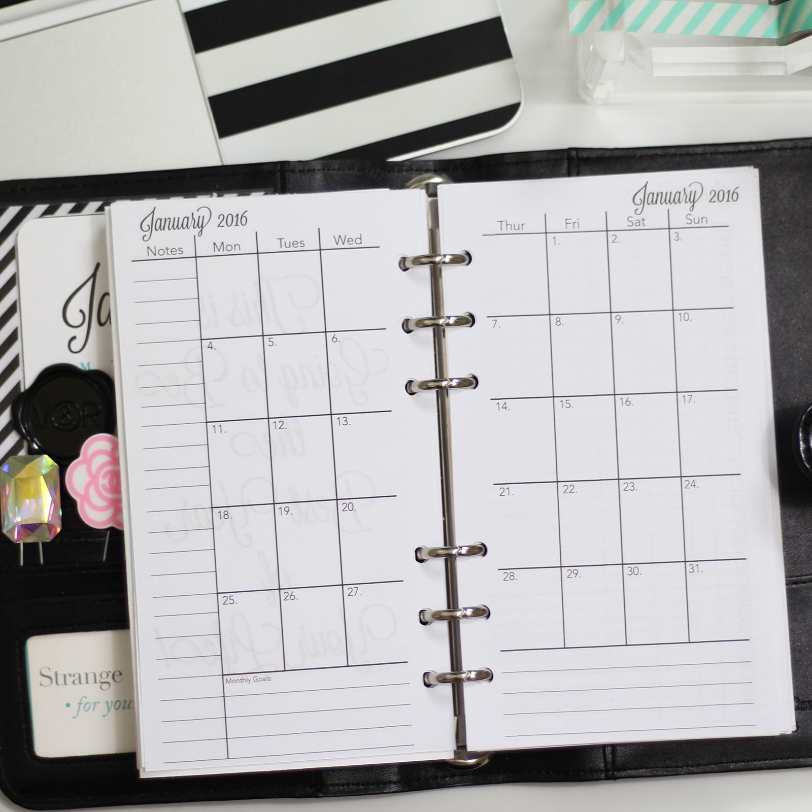 Of course, over in my shop you can also find my complete collection of individual dated printable planner inserts to fill a variety of planning needs, all updated with 2016 dates! You also won’t want to miss this beautiful set of printable monthly journaling cards for 2016 that is a perfect accompaniment to any planner, and new to the shop for 2016, I have also created a set of monthly printable stickers for you to use to keep a month at a glance view wherever you need it most in your planning system!