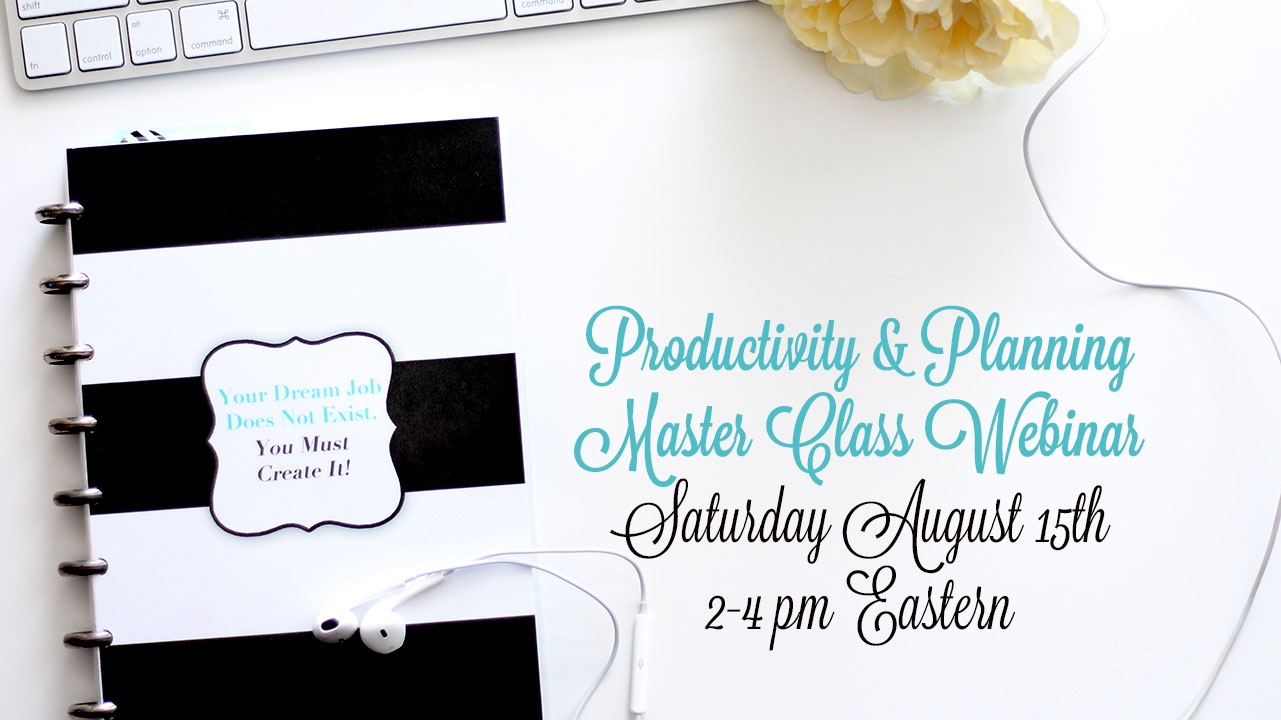 I have officially announced my first Productivity & Planning Master Class Event and tickets are on sale now! On Saturday August 15th from 2-4pm eastern I will be hosting a LIVE webinar event where I cover two of my favorite topics; planning and productivity. During this event, I will teaching you my best tips and tricks for optimizing your planning system, whether you use a Filofax, an Erin Condren Life Planner, a Day Designer or even a digital app on your computer or phone. I will also educate you on the best productivity methods and philosophies I have found and explain how you can implement these methods in your own life immediately to begin achieving your important goals and plans.