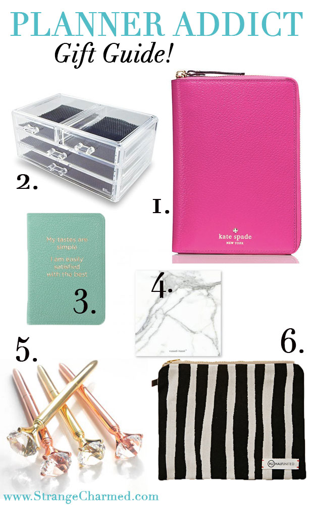 The Most Wonderful Time of Year is Almost Upon Us! So, I thought this would be the perfect time to do a short series of gift guides before Black Friday and the holiday rush begins. Of course, since this is a Strange & Charmed Gift Guide, my choices for 2016 will be themed into categories that pertain to my readers. The first Gift Guide is themed for the Planner Addict in your life. Whether that be you or a friend! The second Gift Guide is themed for your Business Bestie. This may be a fellow #LadyBoss or co-worker that you want to spoil this year! The third and final Gift Guide is themed for the Homebody. This could be someone who loves home decor and entertaining, or a book lover who prefers to stay in on a cold winter’s night to relax and enjoy the comforts of home. Of course, with all three of these gift guides for 2016, I will include links at the bottom of the post where you can check out these items, start making your 2016 holiday gift list and get to shopping. So, I hope you’re excited for this series!