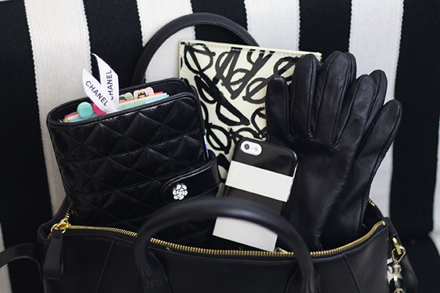 This bag is a really great size for me. It fits a variety of items and pouches and has a few key pockets that are nice and roomy! Of course, I normally carry my personal sized planner with me, and it fits very well in this bag. I especially like how my planner can stand up in the bag, which I think helps keep the bag organized and compartmentalized! Right now I am going through a very strong black and white phase as well with a lot of my accessories. Of course, I always have a pop of turquoise and pink in my bag out of habit! I just think this color scheme is great for Winter. It’s simple and clean, which is exactly what I want in the colder months.