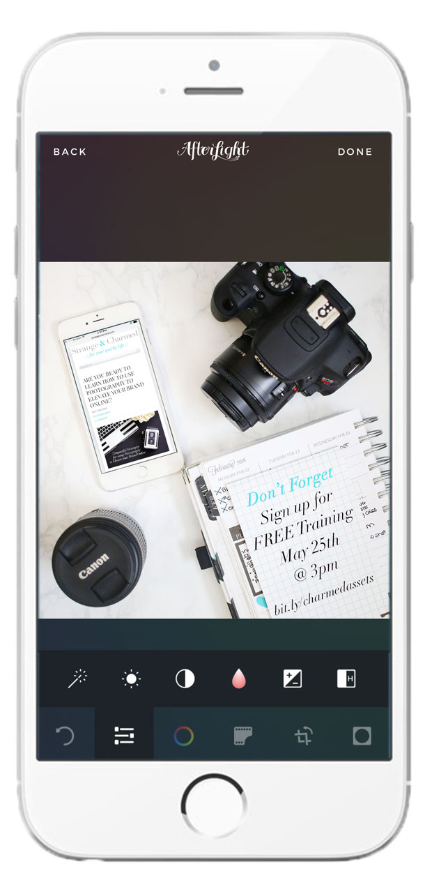 Afterlight is the go to app in my toolbox that I use for general editing like adjusting the brightness, contrast and saturation of the image. I have used many different apps to adjust these basic features, but Afterlight produces the best results by far! I also love the temperature feature inside the app that gives you the ability to remove those casts of colored light on your image that result when you aren’t shooting in full natural light! Definitely worth the download and an all purpose photo saver!