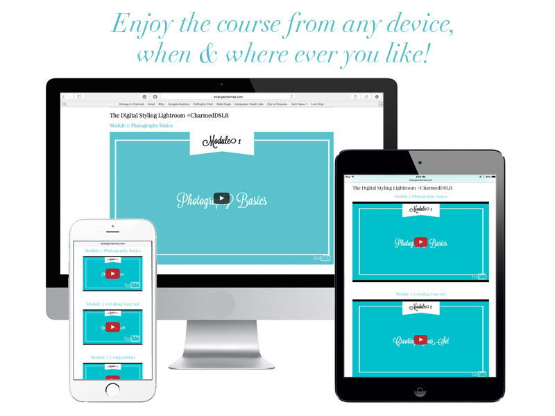 The Digital Styling Lightroom is a 5 Module Video Course. After you purchase DSLR, you will be given a QuickStart Guide to help you access the Course Members Area where you will find the 5 Video Modules ready for you to hit PLAY! The Members Area is completely mobile friendly, so you can enjoy the course from any internet enabled device.