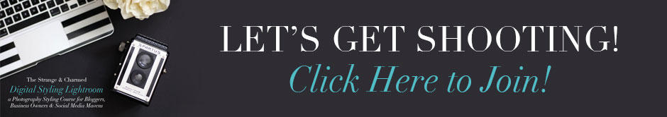 Today on my FREE Photography webinar, 7 Impactful Strategies for Using Photography to Elevate Your Brand, I dropped a bomb on you guys! For the last few weeks, I have been working on a completely new product that is different than anything else I’ve created, and as far as I can tell, is also a product completely unique to the online digital marketplace. As you may already know, this month, I hosted a 30 Day Photo Challenge & Mini Course, called #CharmedDSLR, which was short for the Strange & Charmed Digital Styling Lightroom. This Mini Course was a primer for a full length Photography Styling Course that just released today!