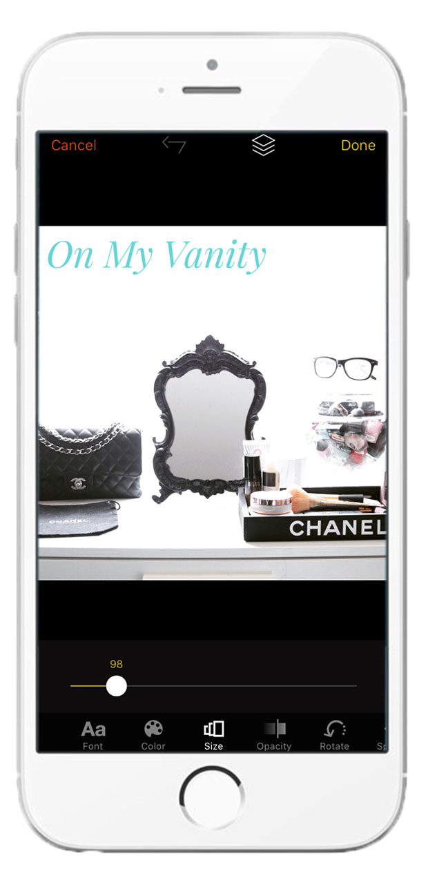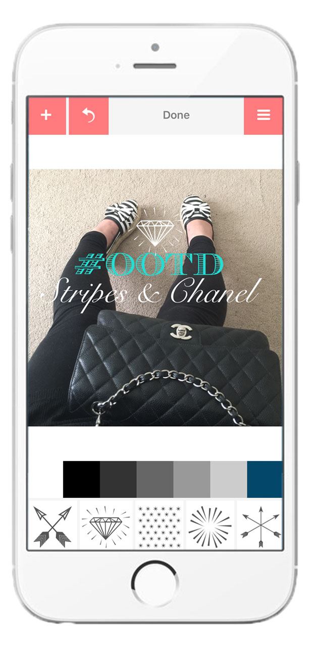 Rhonna Designs is a very fun app that is great for creating fun, promotional style images. It includes a feature for adding text which I do like to use, but it also has a lot of fun “stamps” and effects built into the app to help you create eye catching graphics. Usually, these sorts of images will be shared on Instagram or Facebook because they are more of a one-time use graphic as opposed to a staple styled shot or product graphic that I would want to reuse!