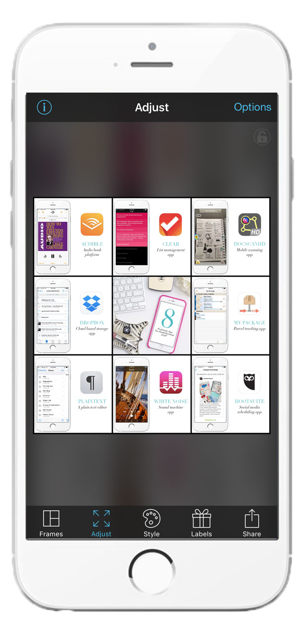 PicFrame is another app I’ve had in my toolbox for a while and this one pretty much serves one specific purpose. PicFrame helps you create collages out of your photos which is very handy for product shots, Instagram and blog posts! Even though I also use Photoshop to edit my blog and shop images, I tend to use PicFrame to create collages so I don’t have to bother with Photoshop. It’s a very easy and straightforward app to use!