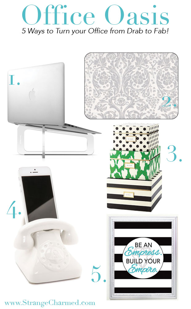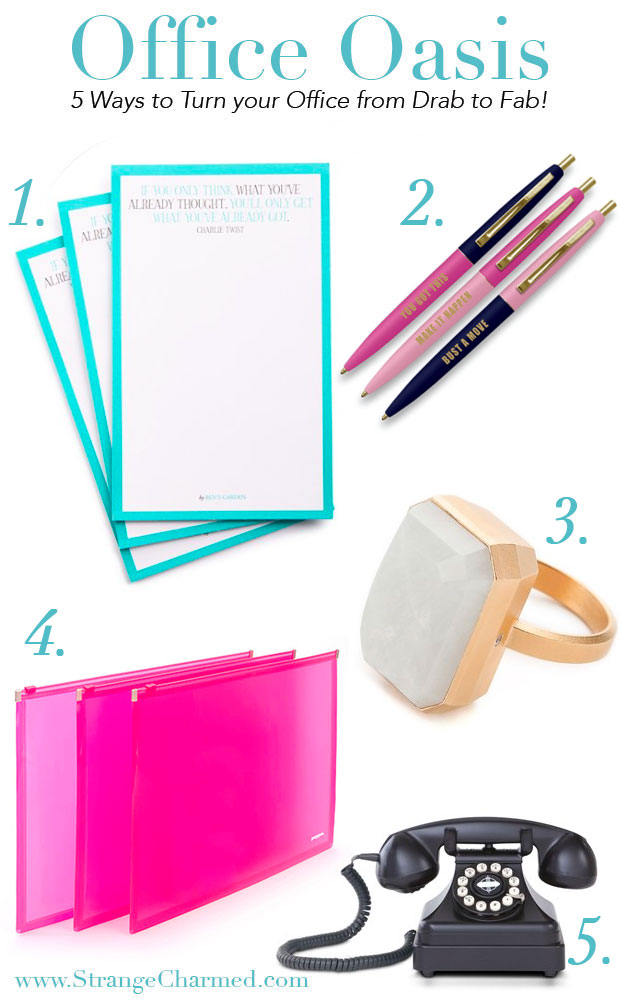 You know I love me some gorgeous office decor that is both functional and inspirational! So I decided to start this little series where I highlight 5 ways you can turn your office from drab to FAB without spending a ton of money! Seriously, how awesome is this series going to be?!? I’m so excited to share my favorite office trends from DIYs you can do on the cheap to beautiful and functional office supplies that will add personality to your desk!
