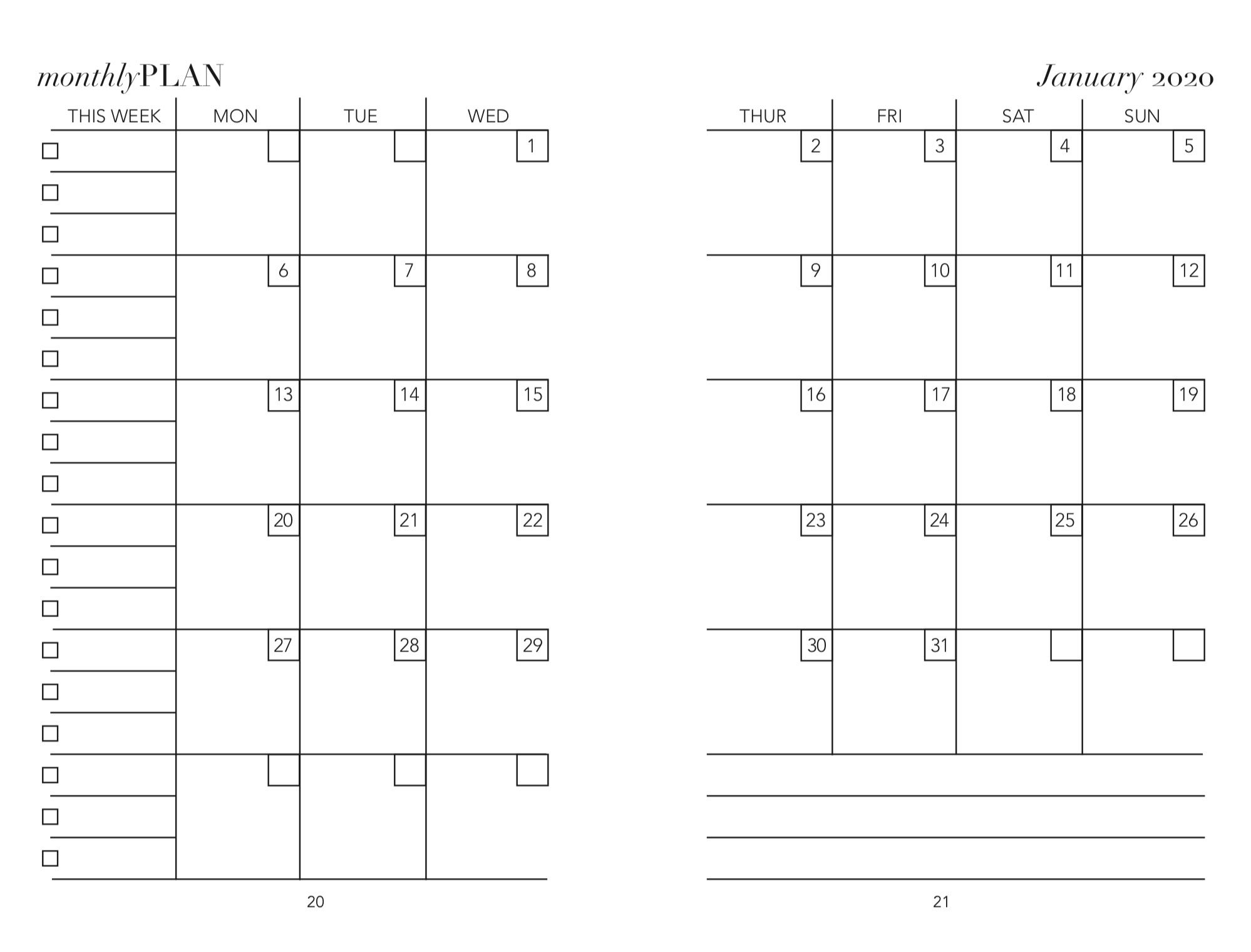 • Your choice of: Month on One Page or Month on Two Pages Calendar