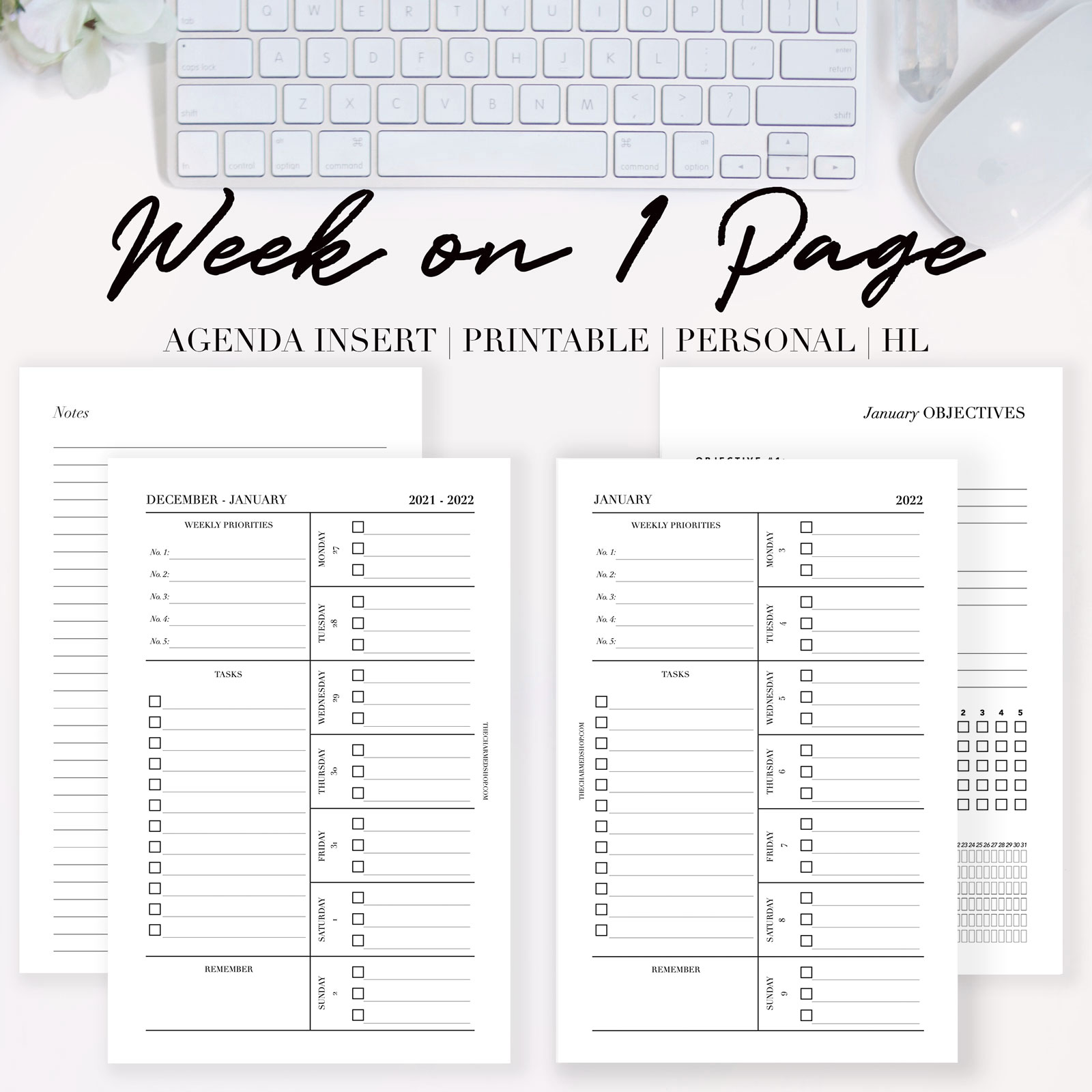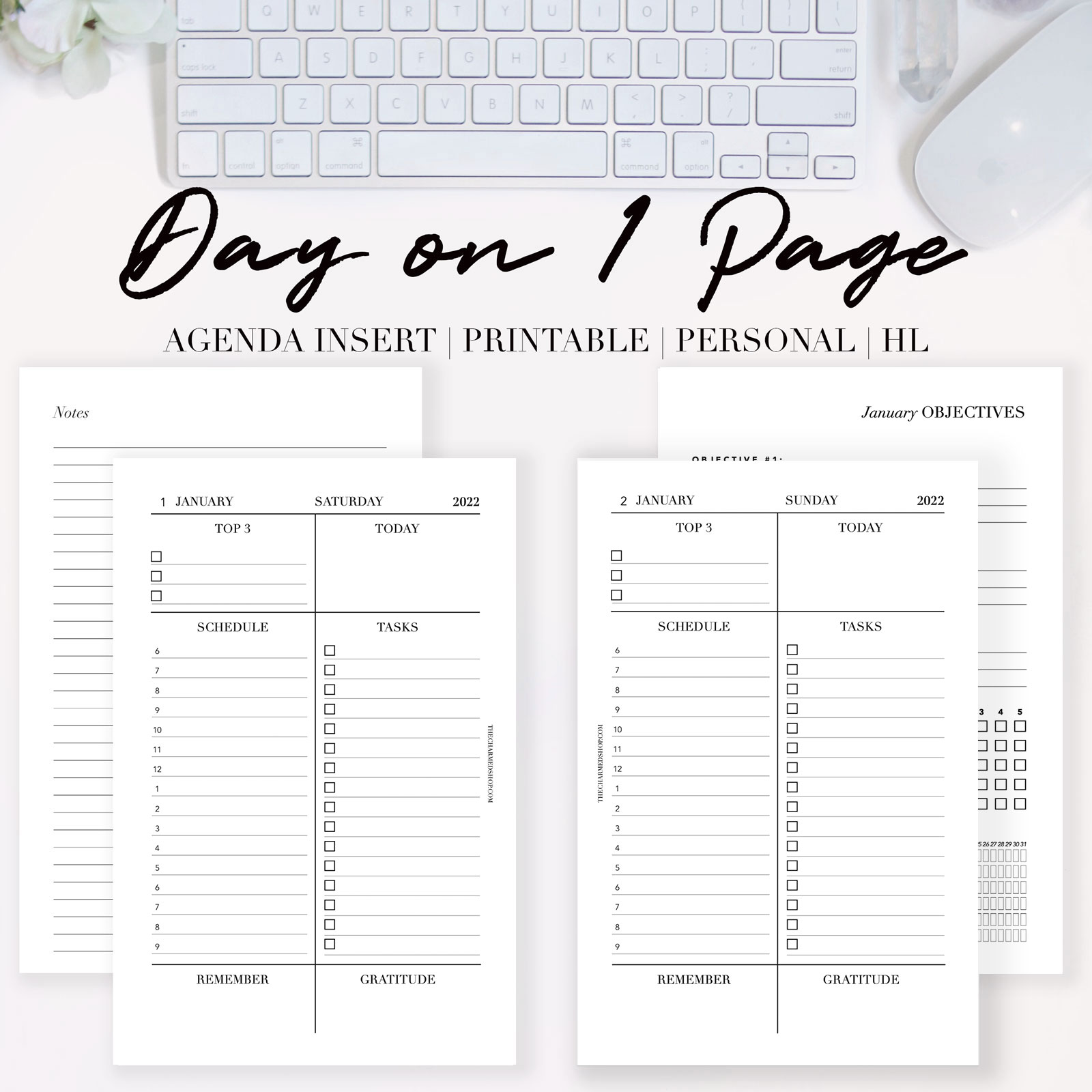 • Your choice of: Vertical Week on 2 Pages, Week on One Page or Day Per Page Agenda Spreads