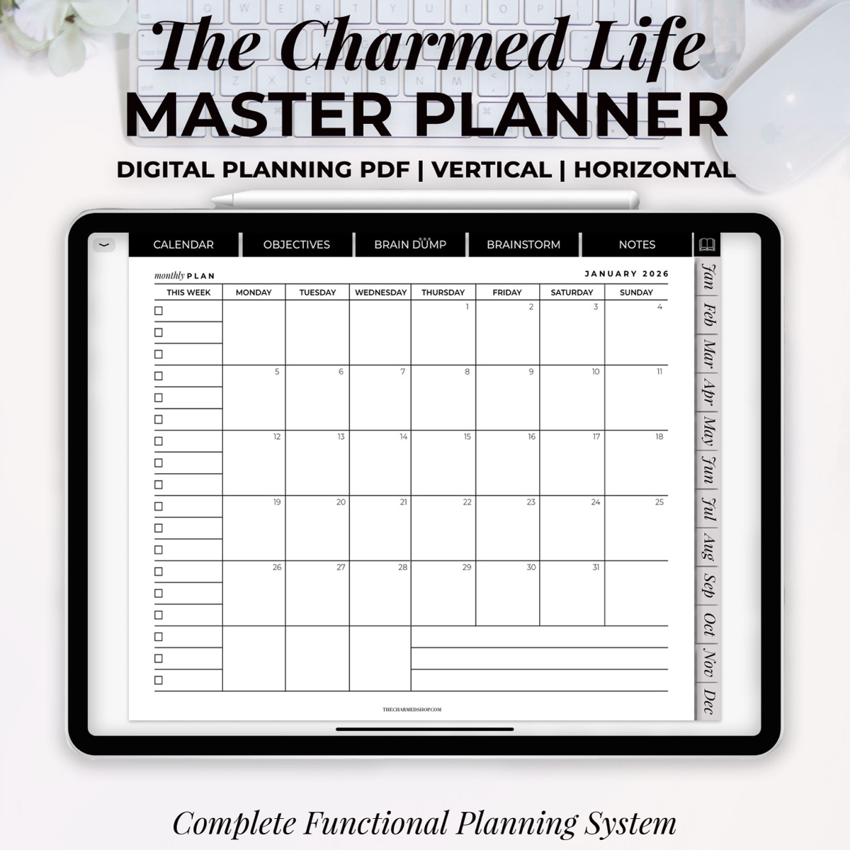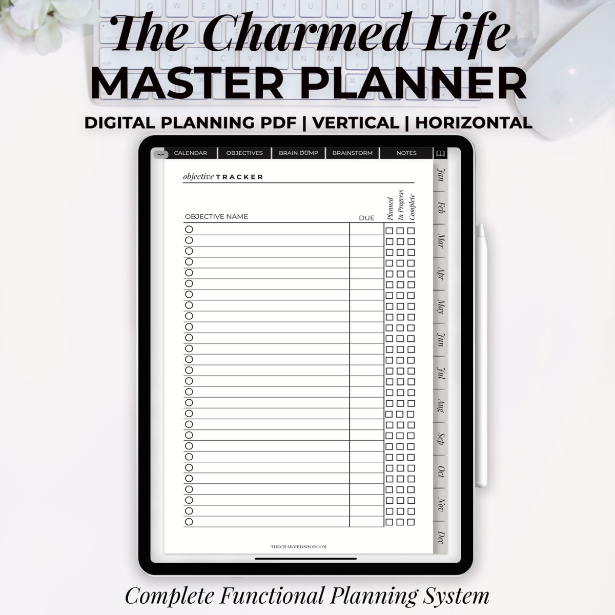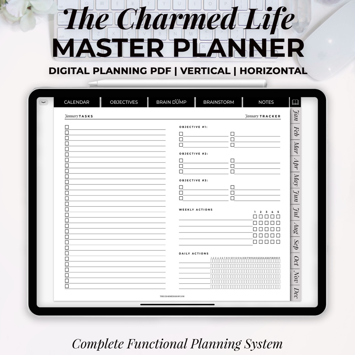The 2026 Digital Master Planner is a first of its kind, digital functional planning system to help you plan for a balanced, organized and successful life- one year at a time! The Digital Master Planner is comprised of a system of over a dozen elegantly designed inserts based on productivity and neuroscience research to help you capture your plans and ideas, define strategic objectives to work towards and to track and allocate your work each day. The Digital Master Planner is truly a tool intended to help you take your goals and tasks from to-do to done!