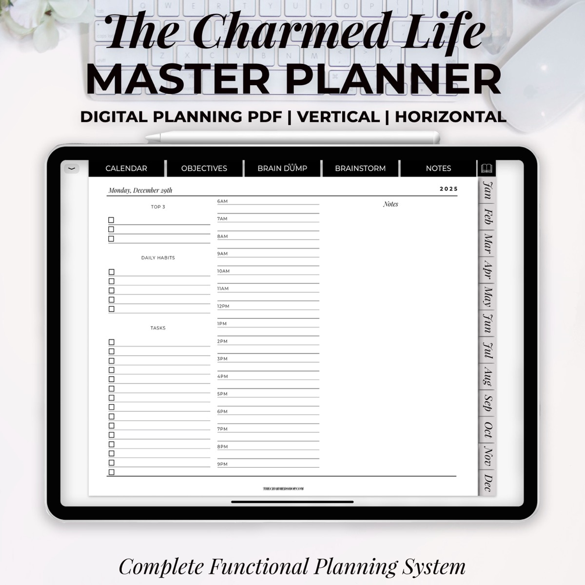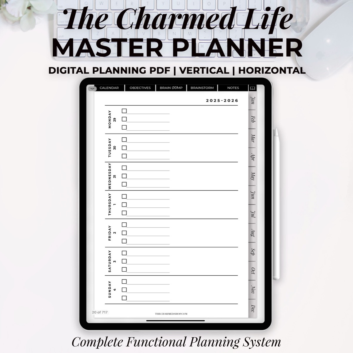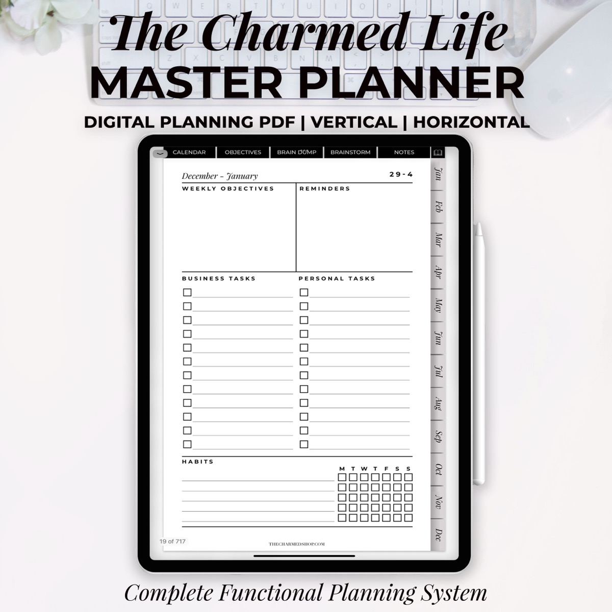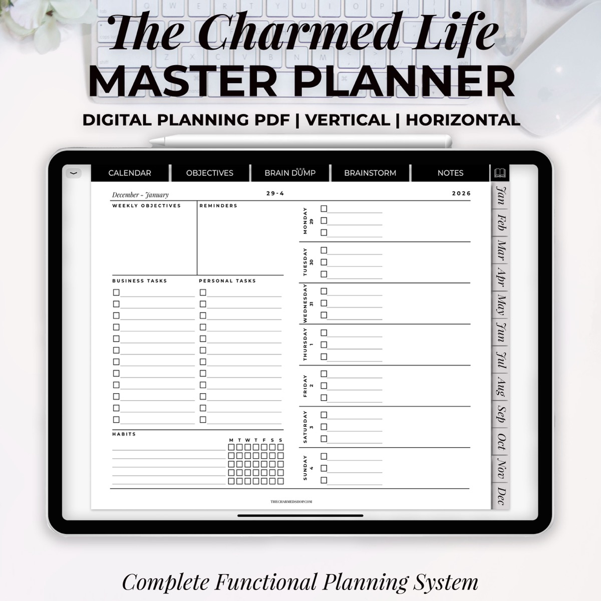 The 2026 Digital Master Planner is a first of its kind, digital functional planning system to help you plan for a balanced, organized and successful life- one year at a time! The Digital Master Planner is comprised of a system of over a dozen elegantly designed inserts based on productivity and neuroscience research to help you capture your plans and ideas, define strategic objectives to work towards and to track and allocate your work each day. The Digital Master Planner is truly a tool intended to help you take your goals and tasks from to-do to done!