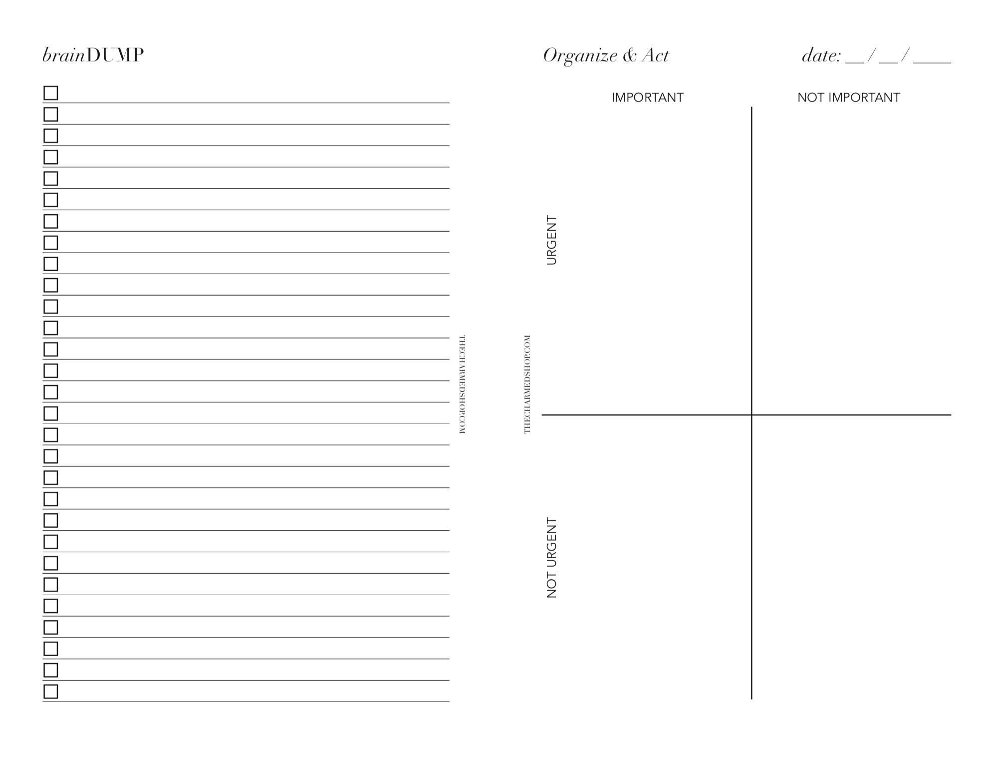 • Braindump with Organize & Act Inserts