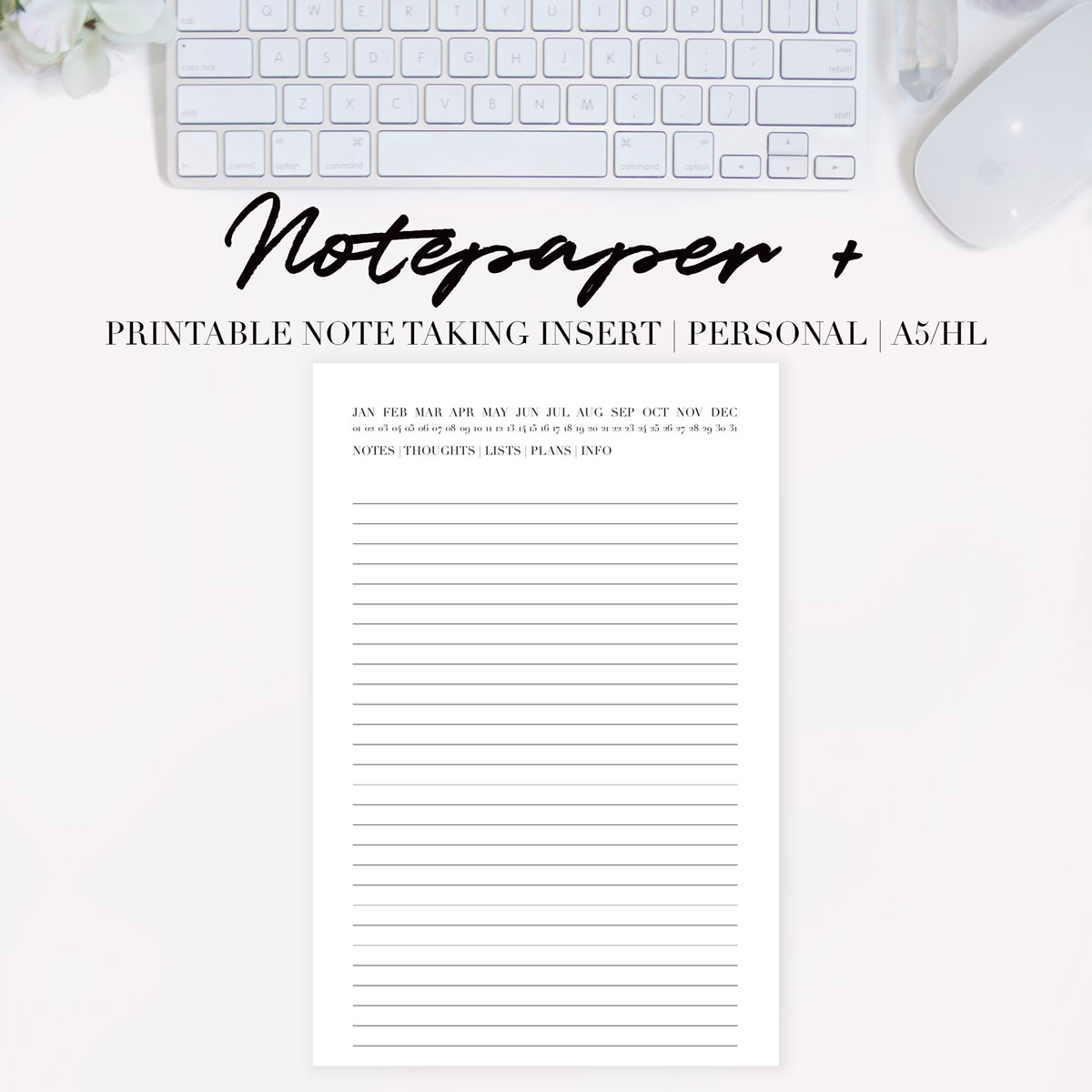 Notepaper is something all productivity junkies need plenty of in their planners, and I call this insert Notepaper+ because it’s a little more than your standard scratch paper. Designed for prolific note takers, the Notepaper+ insert helps you catalogue the type of information on your page, whether it be Notes, Thoughts, Lists, Plans, or Information, to help you better organize and process life’s little details. Experts assert that it isn’t just initial note taking that helps us to become more productive, but more importantly is the system of organization that you implement to process those notes. Let the Notepaper+ insert help you reach a new state of zen in your daily note taking by helping you track your information efficiently!