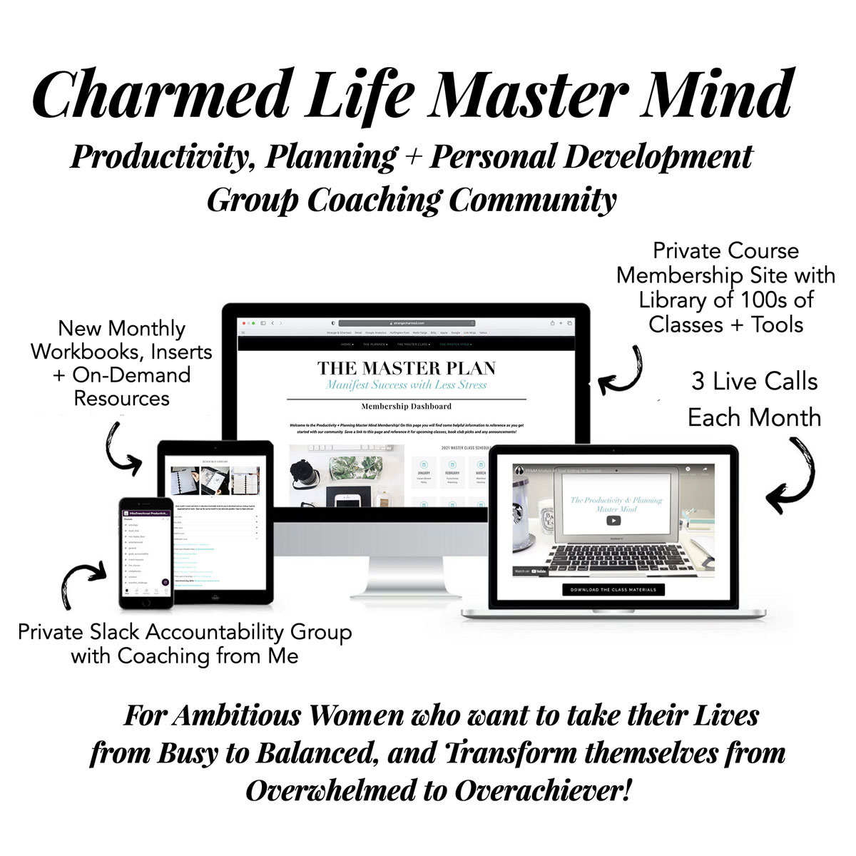 This listing is for the Monthly Payment Plan Option of the CHARMED LIFE MASTER MIND, formerly known as the Productivity + Planning Master Mind Private Membership Group!